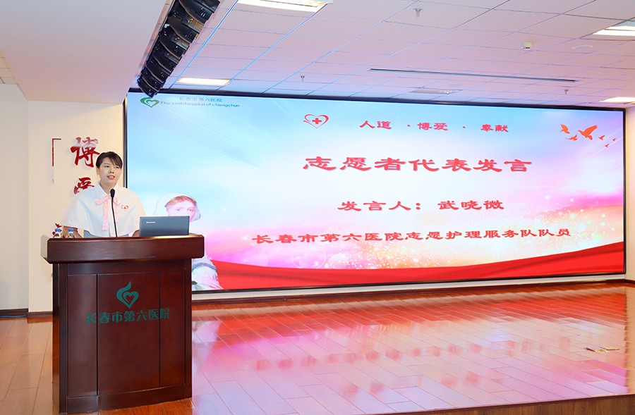 张利岩理事长在致辞中表示,志愿服务是一项光荣而崇高的社会公益活动,发展志愿服务是推进健康中国建设的重要组成部分,也是实现“人们对美好生活向往”的重要推动力。她希望,长春六院志愿护理服务队继续弘扬南丁格尔精神,大力发扬红十字人道主义精神,严格遵循总队的章程,在充分结合医院自身优势基础上,积极拓展志愿护理服务内涵,彰显六院人的护理价值,维护春城人民的健康和幸福,促进社会和谐与进步。