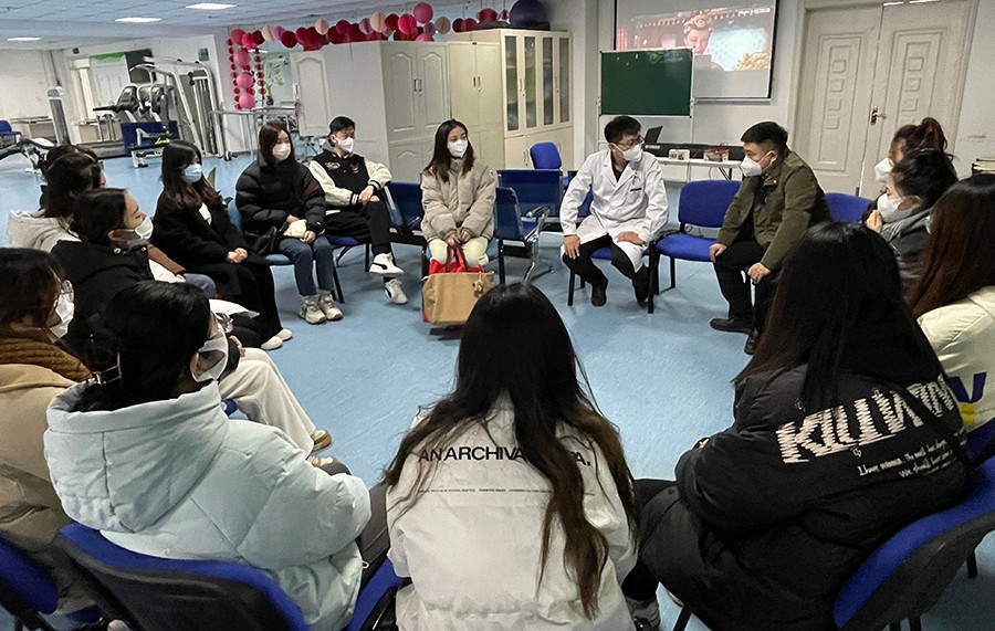 医院康复科主任梁博热情接待了长春大学美术学院团委书记石磊一行人,并详细介绍了科室日常工作内容、康复项目及精神障碍患者康复工作特点。随后,他带领志愿者参观了康复中心、烘焙坊、开放式居住机构,并介绍了特色康复治疗方式,进而加深了大学生志愿者对精神疾病患者生活习惯的了解。为了让大学生志愿者尽快进入康复师的角色,增进相互了解,康复科特别组织了团队互动游戏,现场气氛和谐融洽。