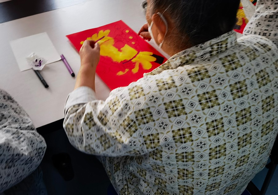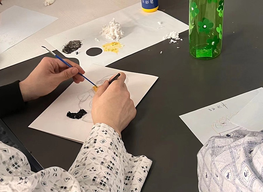在康复师的帮助指导下,大学生志愿者们发挥自身专业技能,参与到这场以“绘画”为主题的活动中,与患者一同享受绘画与手工的乐趣。活动中,志愿者们主动与患者沟通互动,分享自己的生活与心情,引导患者改善情绪,重获生活乐趣,满足情感上的自我表达,加强他们社会交往能力的恢复。快乐的时光总是短暂,活动结束时大家意犹未尽。“大学生康复师”与患者们约定,今后每周一、三、六的下午还会相聚于此,共同徜徉绘画的海洋,交流绘画作品。