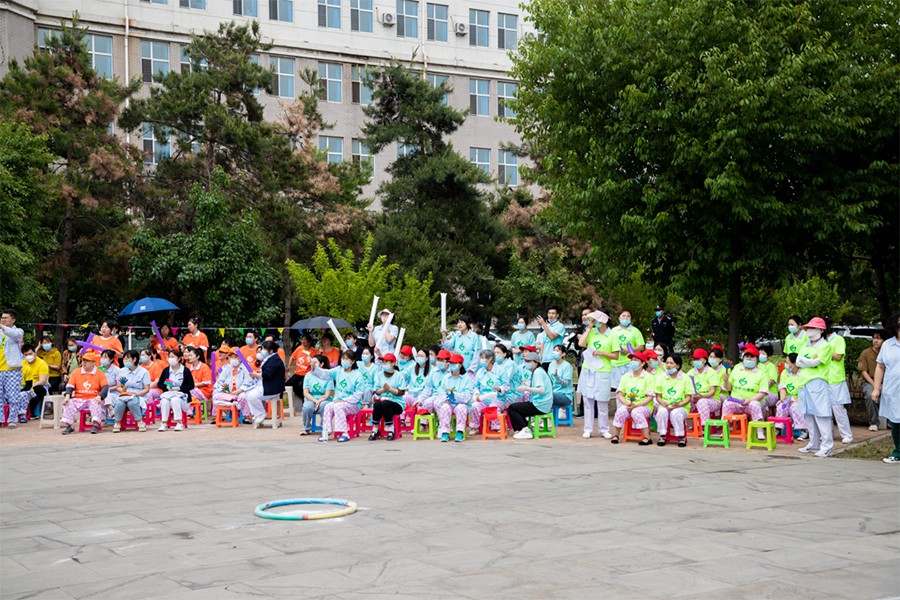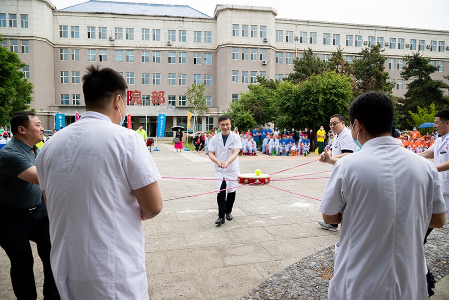 盛夏六月,夏树苍翠。伴随着一阵阵激昂的歌声回荡在小妲己直播下载 上空,6月9日下午,第九届“悦运动·心健康”医患趣味运动会在一片热闹和谐的氛围中拉开序幕。医院党委书记张延赤,党委副书记、院长付晶,党委副书记杨洪凯,副院长郑广翔、董勇,总会计师熊雪玲出席了运动会开幕式并全程观看了比赛。各疗区科主任、护士长、医生、休养员及家属、协会志愿者参与到比赛项目中。