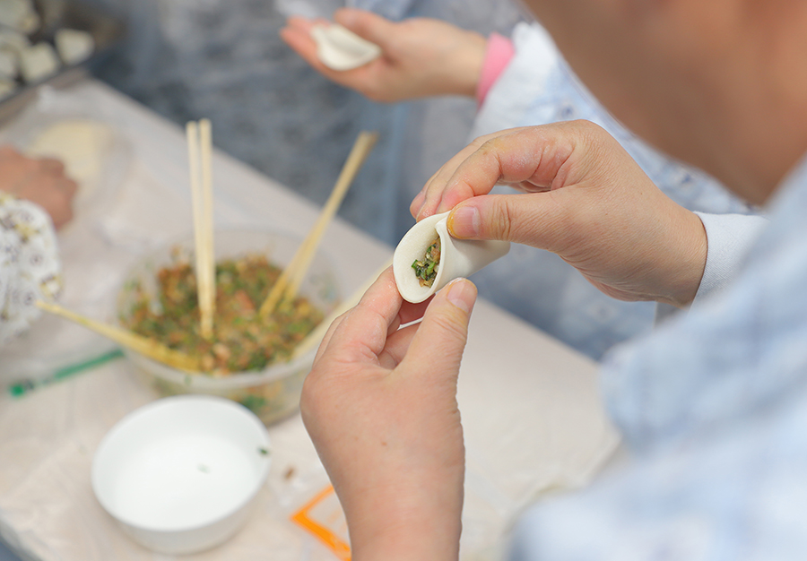 在现场热闹活跃的气氛中,大家纷纷化身“包饺子能手”,不一会儿,各式各样的饺子就在大家完整连贯的动作中产生,“家”的味道紧紧包裹在其中,每个人脸上洋溢着幸福温馨的笑容。