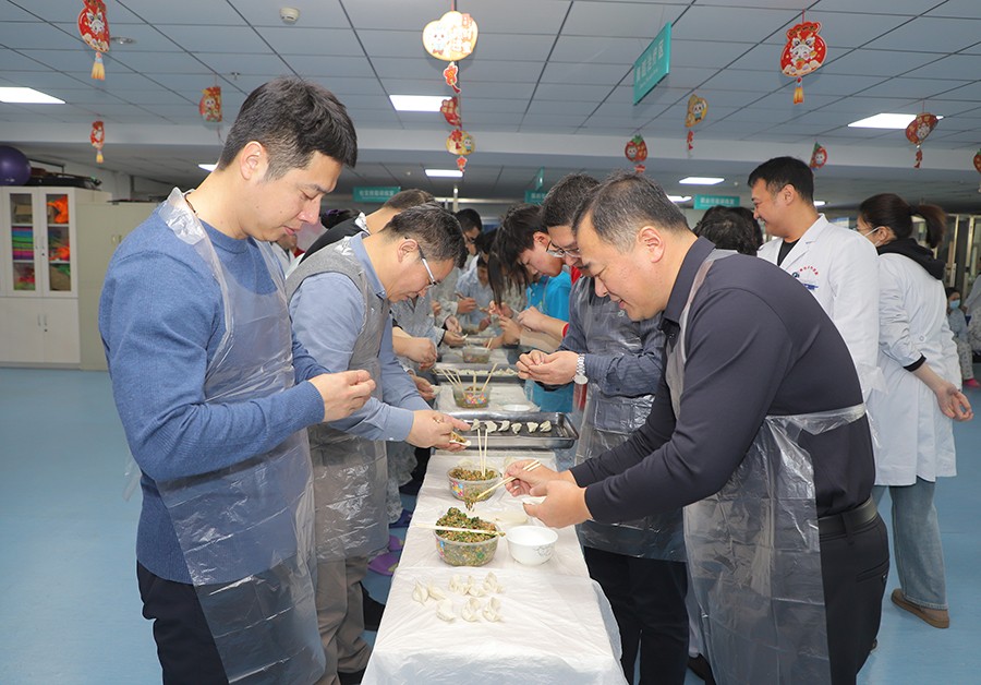 寓意美满、团圆的饺子,是小年这一天不可缺少的美食。为了让休养员们在充满浓烈节日氛围中开怀过节,联欢会现场还举办了一场包饺子比赛。院班子成员与医护人员、休养员们各自组队,一争高低。