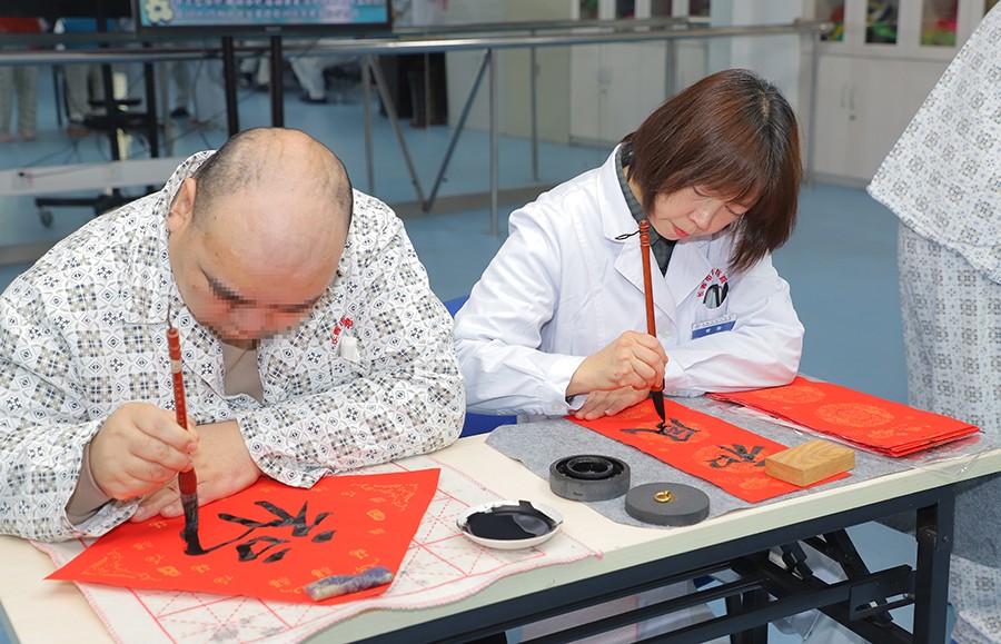 配乐舞蹈、写对联、折纸袋……吉青社工与休养员们用精彩纷呈的节目一一展现自己的康复成果,用自己的才艺展示着对新年的美好愿景。