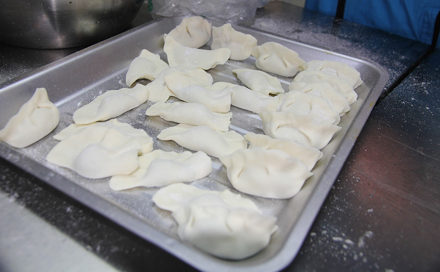采购归来,大家就开始分工协作,摘菜、洗菜、切菜、切肉、拌馅、包饺子,井井有条。有些不会做饭的学员刚开始躲在后面看热闹,精防医生把他们推到菜板前面,要求每个人都亲自动手,学会切菜和包饺子。老杨在家从来没包过饺子,在其他家属的指导下,包出了自己人生第一个饺子,高兴得不得了,拿着饺子给年轻的小健看。大家一边包饺子,一边彼此交流着近况,完全是一幅阖家欢乐的新春景象。