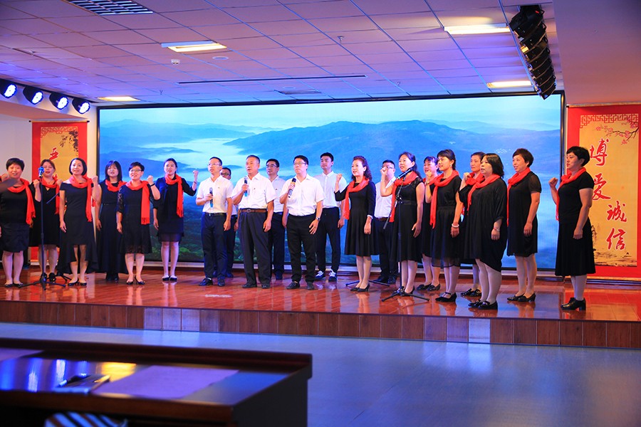 医疗支部代表队带来了《打靶归来》《爱我中华》他们用歌声颂扬党的丰功伟绩,用真挚的感情表达对党和祖国的祝愿。