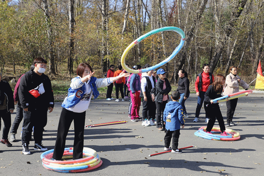 抢答的热情还未褪去,新的挑战又来啦!“接力套圈圈”,听名不难理解,是团队接力作战。不过这“圈圈”可不一般,又粗又沉。要准确套在标的物上,需要一定技巧,更得多出点力气。看我先来。“好,正中!”下一个扔,没中,偏一点点,没事,加油!再下一个扔,圈先立后倒,恰好套上了……“别出圈,往前站!”“把圈悠起来!”观战的队友们也不闲着,不断出谋划策。就这样,比赛队伍你来我往,奋力较量,彼此不服。