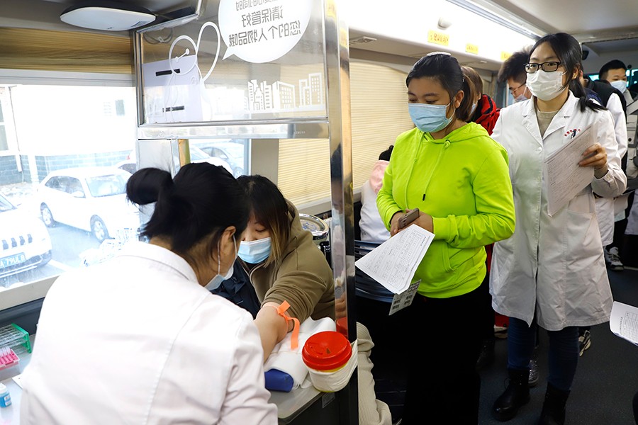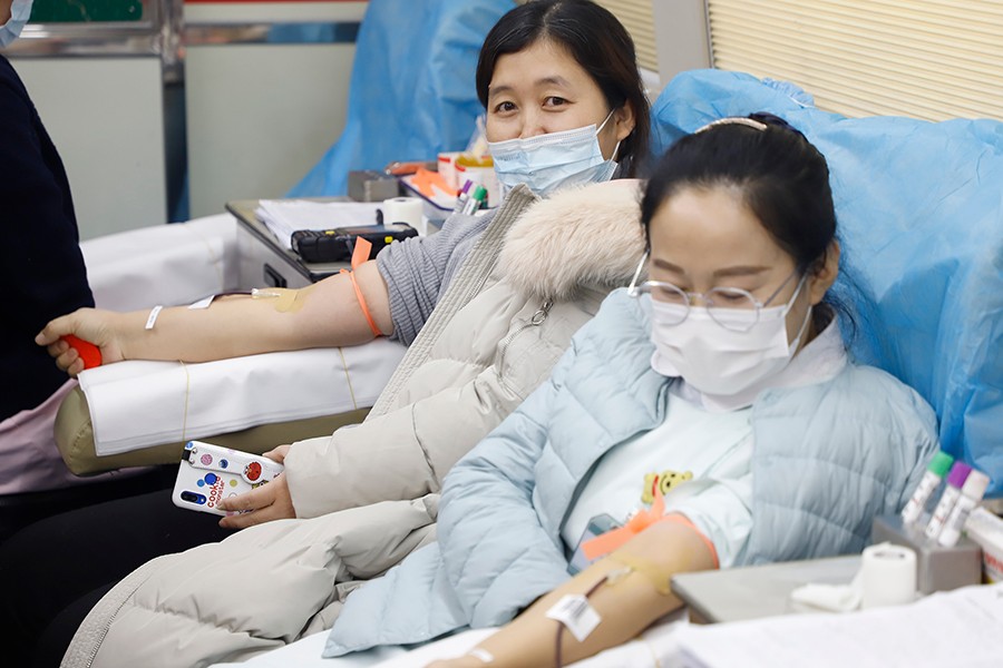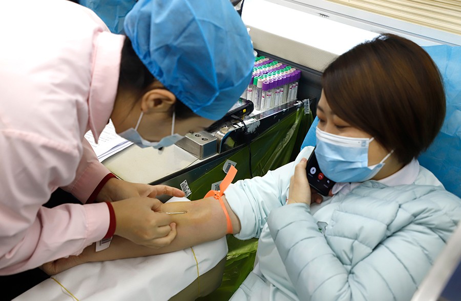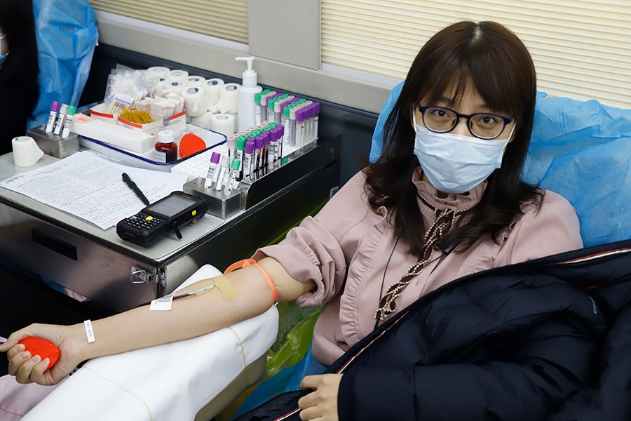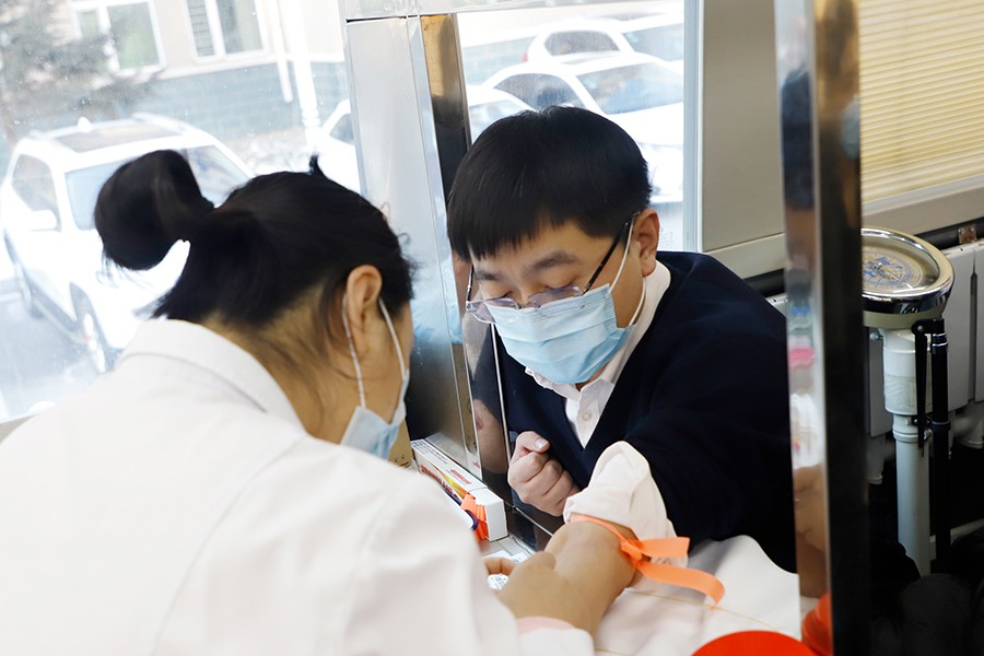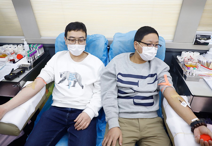 随后,在采血医务人员的指导下,大家依次进行个人信息登记、初检、验血和采血,一切井然有序。参加献血的不仅有医生和护士,还有医院的行政和后勤人员;不仅有父女,还有夫妻。他们趁着工作间隙,一拨又一拨前来奉献爱心。献血之后,他们又马上投入到工作中去。他们用行动和热血彰显了奉献、担当和医者仁心。