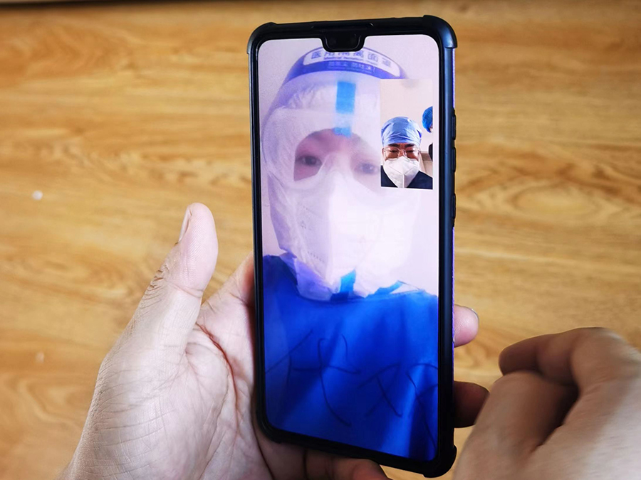 ▶与隔离人员面对面交流,细致入微。4月1日,一名隔离人员突然晕倒,医疗组立即派侯代双和一名医生进入隔离房间为其进行诊疗,量血压、采集鼻拭子,并利用手机视频的方式,把隔离人员的病情时时向负责人汇报,直至把隔离人员安全地转运至120车上,她才松了一口气。