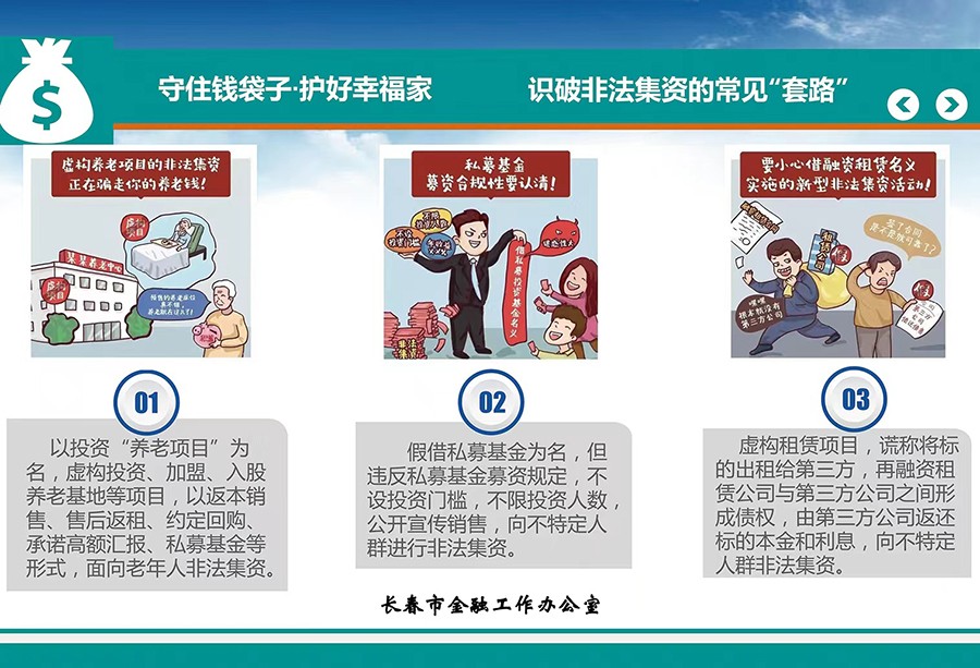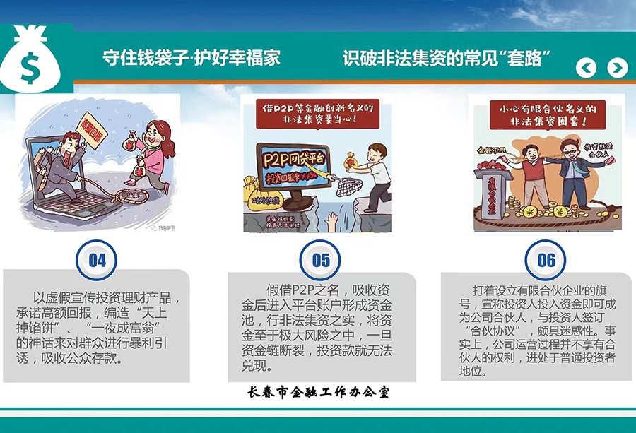 守住钱袋子,识破非法集资的常见“套路” 小妲己直播下载 |2022-06-14 13:12 上一篇战疫有我 | 第一次支援抗疫,他与病毒近距离“过招”! 下一篇战疫有我 | “疫”起坚守,让党旗在抗疫一线高高飘扬 返回列表 相关信息 守住钱袋子,护好幸福家 2023-01-29 警惕养老为名返利进行非法集资 2024-06-12 警惕利用项目分红非法集资 2024-06-12 警惕私募机构非法集资 2024-06-12 警惕销售房产进行非法集资 2024-06-12
