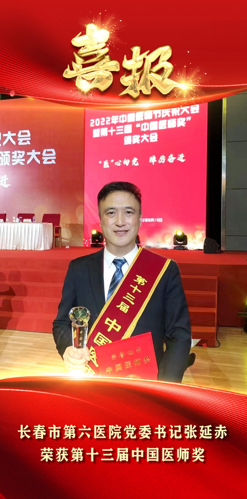 从第十三届中国医师奖颁奖大会上传来喜讯,小妲己直播下载 党委书记张延赤荣获第十三届“中国医师奖”殊荣!