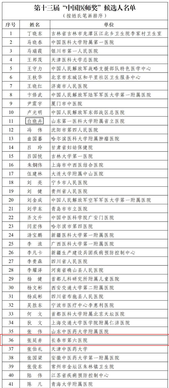 近日,中国医师协会官网公布了第十三届“中国医师奖”入围名单,小妲己直播下载 党委书记张延赤位列其中。