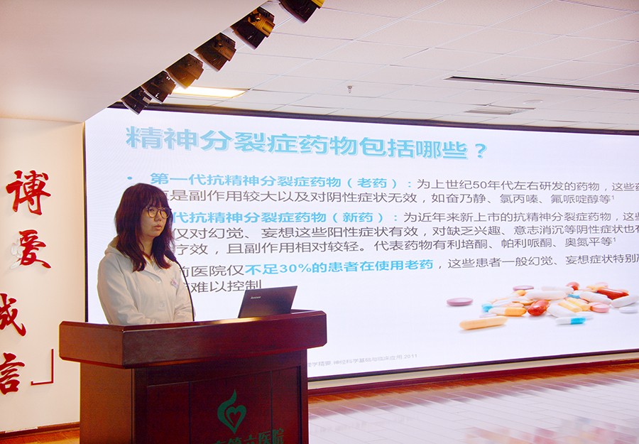 随后,精神科三疗区主治医师张岩与大家分享了以《精神分裂症为什么要服药》为主题的健康科普知识。她从“为什么吃药、药物的副作用、不按医嘱滥用药物”三个方面结合实际案例进行了阐述,大家认真倾听,积极参与互动。