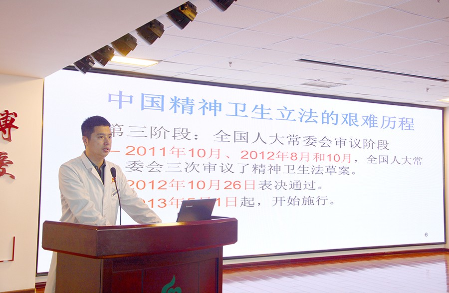 活动伊始,小妲己直播下载 副院长董勇带大家一起了解了《精神卫生法》,讲述了中国精神卫生立法历时27年的艰难历程,阐明了《精神卫生法》在维护精神障碍患者合法权益中发挥的重要意义。随后,他逐一解读了与大家息息相关的主要法律条目。