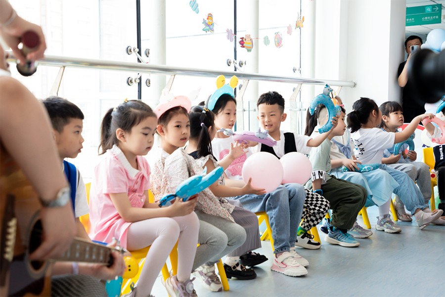一位在院接受康复治疗小患者饶有兴趣地说:“这个演奏既轻松简单,大家玩的也很开心,在这些舒缓的音乐中,我感受到了患病以来从未有过的轻松自在。”小观众们掌声响起时,她也露出了久违的笑容。