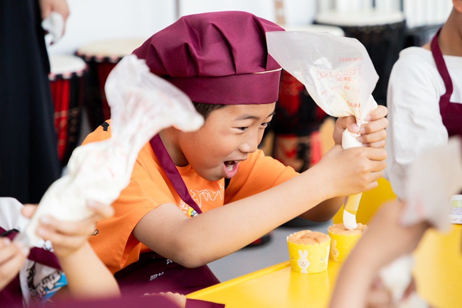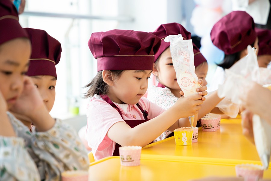 当活动进行到好吃又好玩的“舌尖艺术”(烘焙+自制甜蜜水果捞)时,孩子们欢呼的热情顿时将气氛推向高潮。在“奶油杯子蛋糕”环节中,为了方便小朋友们完成制作,康复治疗师提前将底胚预制完成,孩子们则亲手体验奶油DIY和节日装饰的快乐。有心急的小朋友禁不住奶油的诱惑,偷偷用手指沾着吃,惹得在场的家长和医务人员笑成一团。在自制甜蜜水果捞环节中,孩子们在盒子上贴上自己喜欢的贴纸,把水果和酸奶倒入盒子中,津津有味地吃了起来。此时,多功能厅外的走廊变成了孩子们欢乐的海洋。医院设置此次活动,就是为了培养孩子们的专注力和创造力,增强手部精细动作和手眼协调能力,进而达到感觉统合与综合能力的提升。