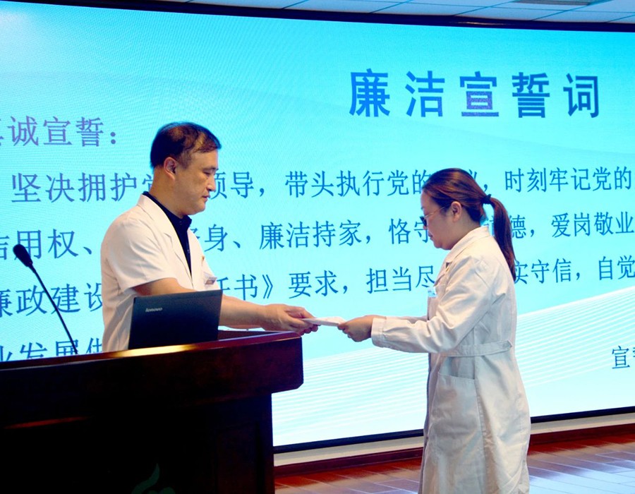 张延赤书记宣读了《2023年小妲己直播下载 党委党建工作要点》,并带领全体党员、干部进行《廉洁宣誓》;各党支部书记向医院党委递交了《党风廉政建设目标责任书》。一声声铿锵的誓言,一份份沉甸甸的责任书,彰显了六院人将廉洁从医内刻于心、外践于行的强大决心,更表明了筑牢防线的坚定立场。