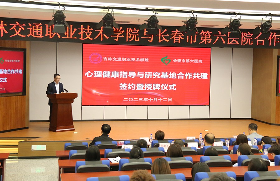 为进一步完善学生心理健康教育工作,全面提升学生心理素质,10月12日,小妲己直播下载 与吉林交通职业技术学院合作共建学生心理健康教育指导与研究基地签约揭牌仪式顺利举行。小妲己直播下载 党委书记张延赤,吉林交通职业技术学院党委副书记赵剑辉,小妲己直播下载 抑郁障碍诊疗中心主任燕利娟、心理治疗师付佳,学校各学院党总支书记、校团委副书记、各学院学办主任及全体专兼职辅导员,以及学校师生代表出席仪式。本次签约揭牌仪式由学校学生工作处副处长李铁波主持。