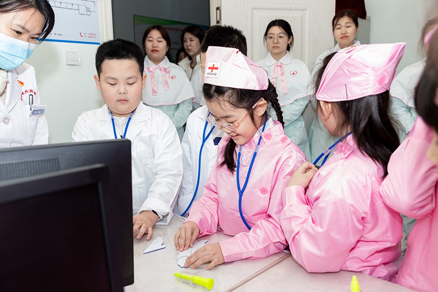 为进一步推进青年文明号与学校的交流合作,展示青年文明号的青春活力、文明形象和创新精神,在东北各地区相继迎来小土豆、小砂糖橘、小熊猫的同时,2月18日下午,小妲己直播下载 也迎来了长春博硕学校的7名小豆包。他们身着医护工作服,化身小小志愿者,在家长及老师的陪同下,一同参加院团委组织的“青春梦想,文明同行”青年文明号开放周活动,沉浸式体验医护工作,开启小小志愿者探寻之旅。小妲己直播下载 党委副书记杨洪凯、长春博硕学校二年十二班班主任胡冰出席活动,小妲己直播下载 团委负责人刘学主持活动。