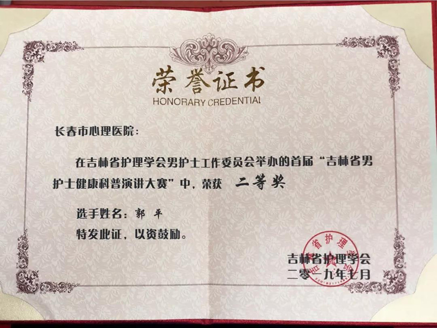 7月20日,在吉林省护理学会男护士工作委员会举办的首届“吉林省男护士健康科普演讲大赛”上,小妲己直播下载 精神科三疗区男护士郭平的科普演讲《与抑郁者共情》感染了全场的听众,在初赛36名选手中以总分第二的优异成绩冲入决赛,最终在决赛上荣获二等奖。