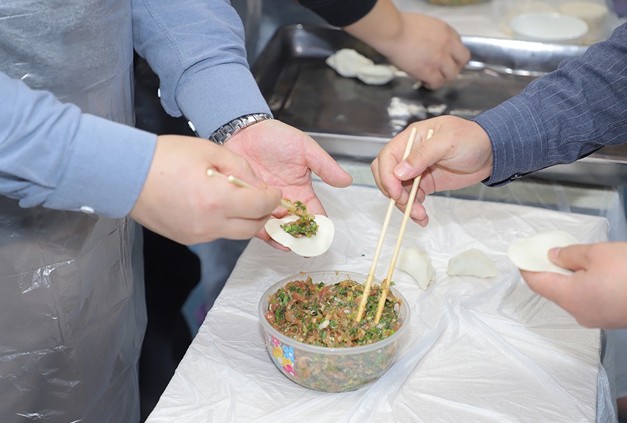 在现场热闹活跃的气氛中,大家纷纷化身“包饺子能手”,不一会儿,各式各样的饺子就在大家完整连贯的动作中产生,“家”的味道紧紧包裹在其中,每个人脸上洋溢着幸福温馨的笑容。