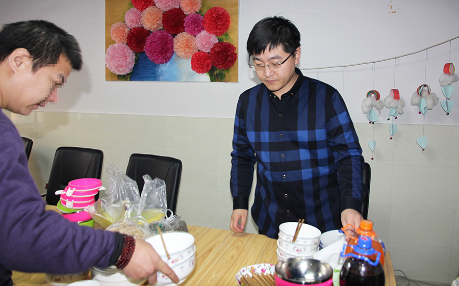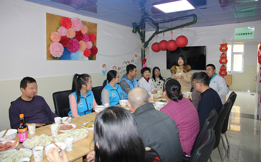梁博副主任说:“小年夜包饺子是我们康复站传统的活动,每年春节之前都会举行,就是建立良好的家庭氛围,让大家聚在一起过年。在康复社区,每周都有各种精彩活动,教学员们如何恢复社会功能,指导他们服药,教会他们识别复发的早期症状等,学员们受益匪浅,有效降低了复发率。湖西社区康复站成立以来,没有一位康复学员严重复发,有很多学员甚至已经两三年完全没有发病的迹象。我们希望通过各种活动,让他们不但能够互相鼓励、交流,还能提高他们对生活自信,提高对社会责任感和价值感。”