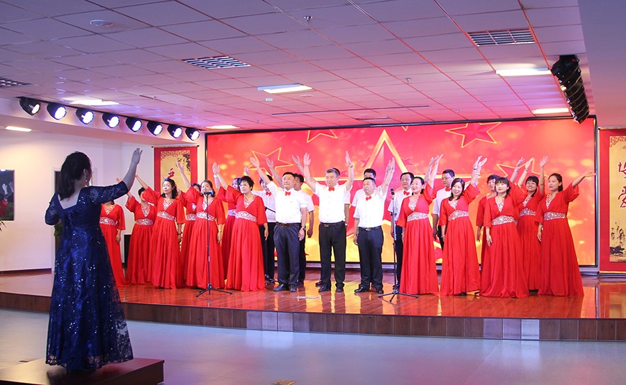 医疗支部代表队带来了《打靶归来》《爱我中华》他们用歌声颂扬党的丰功伟绩,用真挚的感情表达对党和祖国的祝愿。