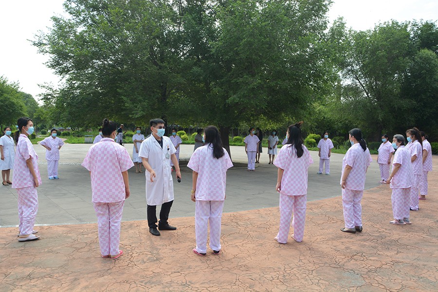 6月29日上午,医技党支部和康复科组织住院休养员共同庆祝党的生日。小妲己直播下载 党委书记、院长桑红参加了唱国歌、带领休养员户外康复等活动。