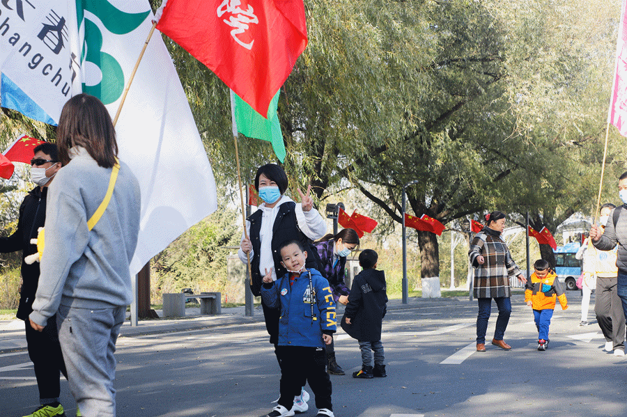 清晨,空气清新,温度舒适,阳光洒在身上,暖暖的。“1、2、1、2……”整队完毕,热身完毕。队伍透着精气神,出发!风中,醒目的院旗迎风招展,领队们走在队前,长长的队伍紧随其后。绕过北普陀寺、走过坝西、过了溢水湾,队伍穿行在森林间,行走在堤坝上。呼吸着清新空气,头顶蓝天、白云,脚下是平整的健康步道。一张张笑脸洋溢着内心的快乐,一双双脚走出健康与自信。