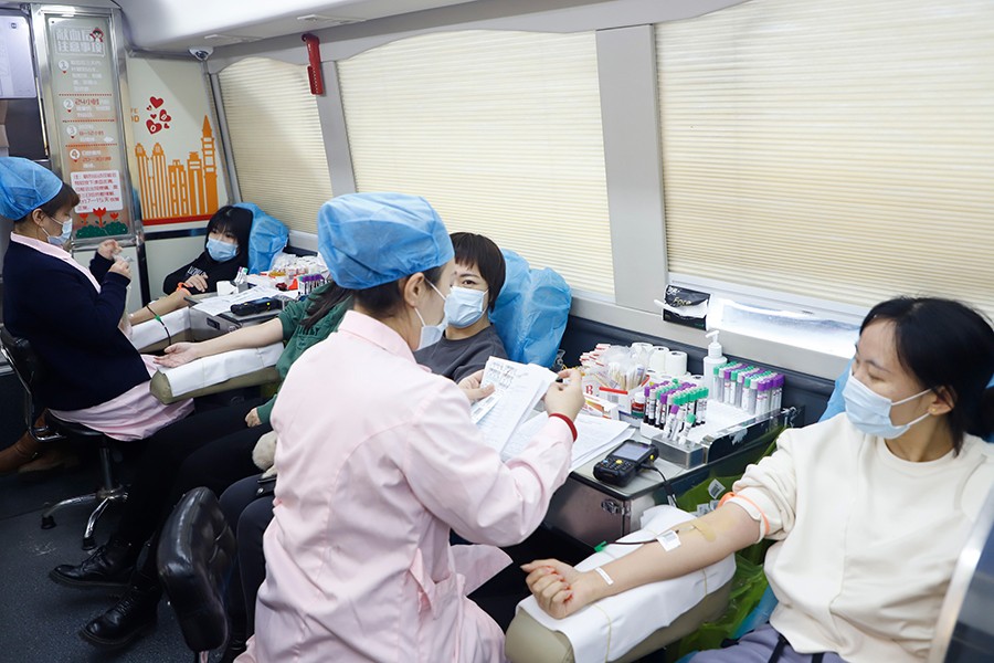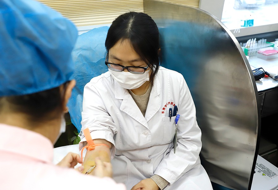 随后,在采血医务人员的指导下,大家依次进行个人信息登记、初检、验血和采血,一切井然有序。参加献血的不仅有医生和护士,还有医院的行政和后勤人员;不仅有父女,还有夫妻。他们趁着工作间隙,一拨又一拨前来奉献爱心。献血之后,他们又马上投入到工作中去。他们用行动和热血彰显了奉献、担当和医者仁心。