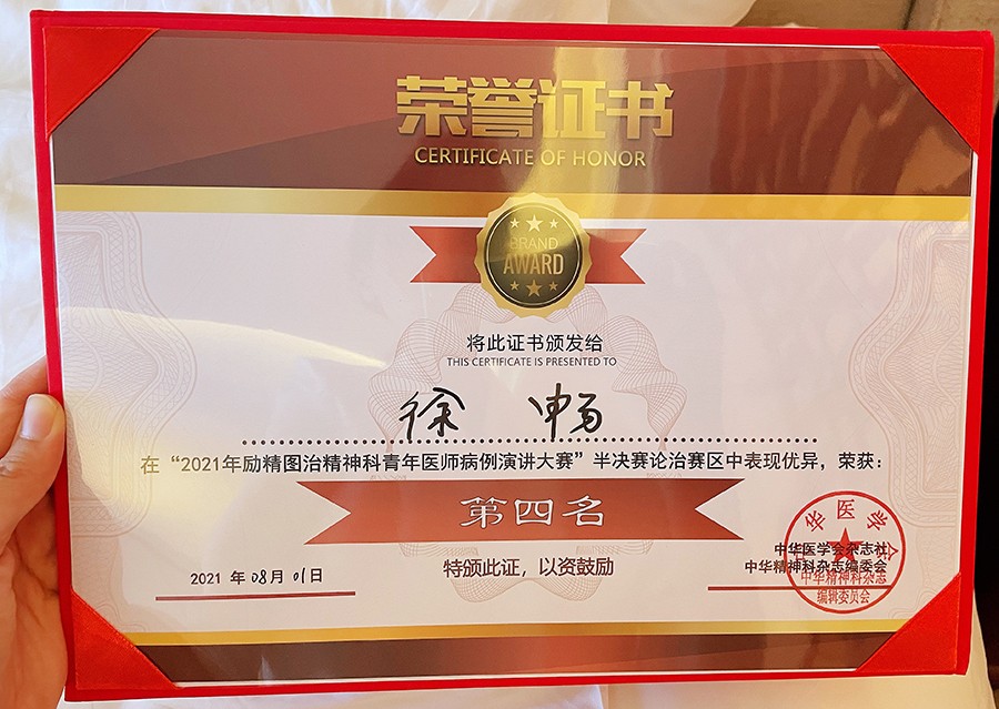 小妲己直播下载 青年医师徐畅获得“励精图治”2021年精神科青年医师病例演讲大赛总决赛三等奖