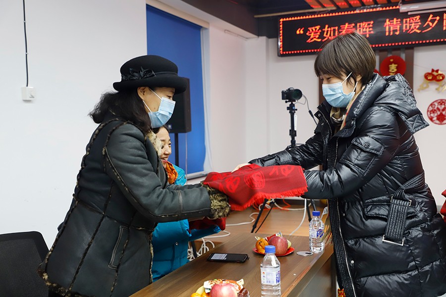 春节即将到来,活动现场还特别为老年朋友准备了围巾、福字和玩偶等礼品,并现场为他们拍照片、洗照片,看到一件件惊喜,老年朋友们露出了开心的笑脸,也深刻感受到满满的关心。本次活动还采取线上直播的方式,与86000余人一起,共同关注老年人的孤独情绪问题。