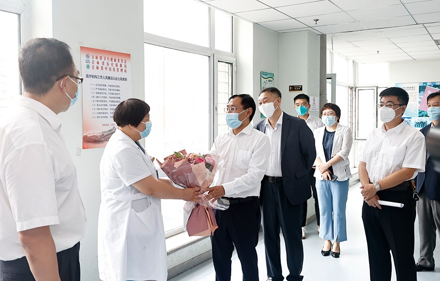 吉林省中医药管理局医政处处长郭建涛,吉林省卫生健康委医政医管处董伟,吉林省医学会秘书处副主任、吉林省医师协会副会长兼秘书长李丹,吉林省医学会秘书处刘建成,长春市卫健委主任助理张兴国、医政处处长关云哲,小妲己直播下载 副院长郑广翔、董勇,工会主席商海杰,医务科长吴琼等陪同。