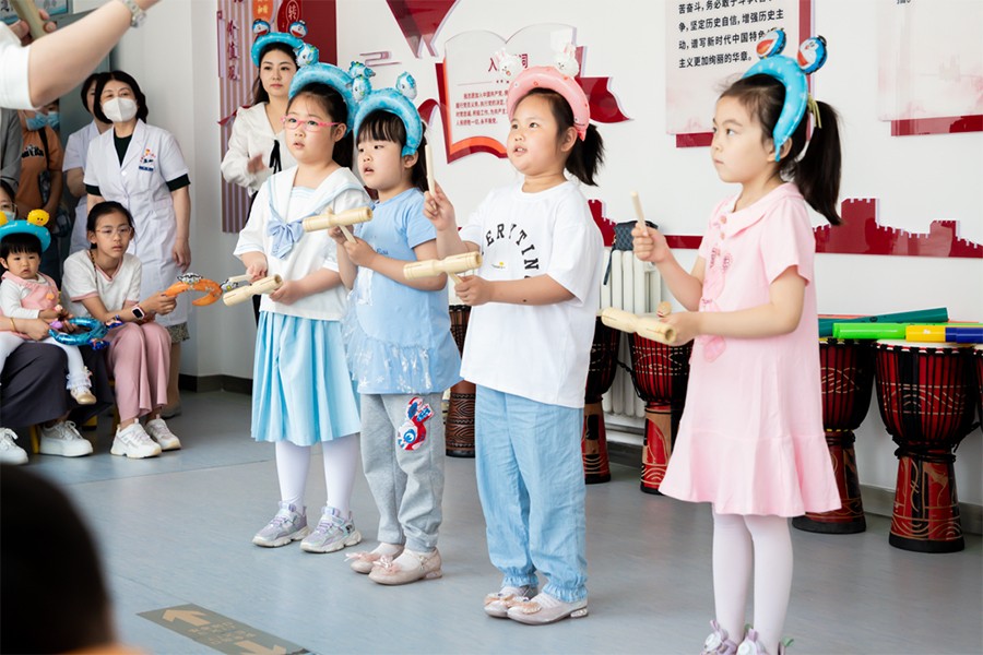 一位在院接受康复治疗小患者饶有兴趣地说:“这个演奏既轻松简单,大家玩的也很开心,在这些舒缓的音乐中,我感受到了患病以来从未有过的轻松自在。”小观众们掌声响起时,她也露出了久违的笑容。