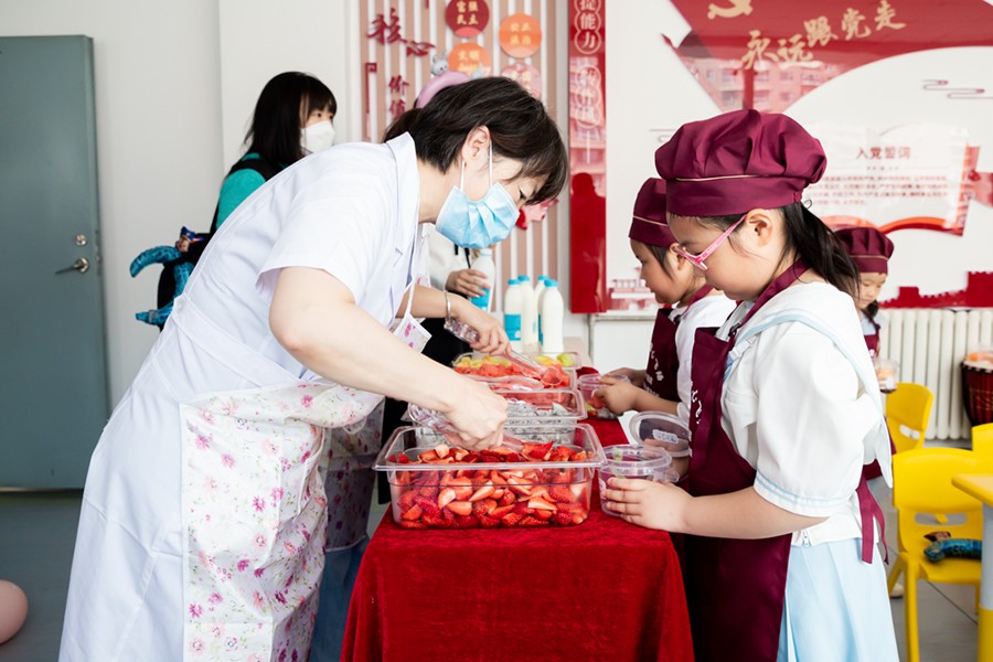 当活动进行到好吃又好玩的“舌尖艺术”(烘焙+自制甜蜜水果捞)时,孩子们欢呼的热情顿时将气氛推向高潮。在“奶油杯子蛋糕”环节中,为了方便小朋友们完成制作,康复治疗师提前将底胚预制完成,孩子们则亲手体验奶油DIY和节日装饰的快乐。有心急的小朋友禁不住奶油的诱惑,偷偷用手指沾着吃,惹得在场的家长和医务人员笑成一团。在自制甜蜜水果捞环节中,孩子们在盒子上贴上自己喜欢的贴纸,把水果和酸奶倒入盒子中,津津有味地吃了起来。此时,多功能厅外的走廊变成了孩子们欢乐的海洋。医院设置此次活动,就是为了培养孩子们的专注力和创造力,增强手部精细动作和手眼协调能力,进而达到感觉统合与综合能力的提升。