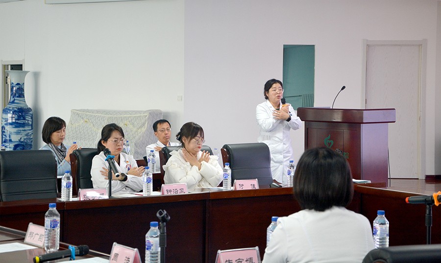 ▲吉林省人民医院心理门诊主任尹洪影在分享互动感受