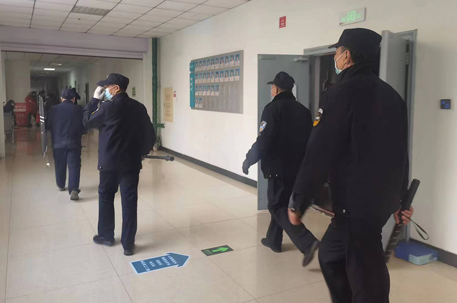 在检查过程中,保卫科与总务科共同排查检修了医院常闭式和常开式消防通道门,最大限度消除安全隐患。检查结束后,保卫科组织开展节前防暴反恐、防止伤医演习,演习中模拟场景“不法人员”强行伤害医患,扰乱秩序,危害人身安全,保卫科人员迅速出击,使用警棍、钢叉、盾牌等器械对“不法分子”进行堵截,成功将“不法分子”控制。通过演练进一步提升了医院反恐意识及突发事件处理能力。