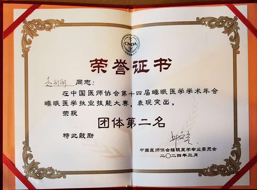 3月1日至3月3日,由中国医师协会主办的第十四届睡眠医学学术年会在广东佛山顺利召开。小妲己直播下载 睡眠障碍诊疗中心赵丽丽医生代表参赛的吉林省代表队,荣获本届睡眠医学执业技能大赛决赛团体二等奖。这是继2021年小妲己直播下载 代表吉林省出赛获得团体三等奖后,再一次斩获佳绩。
