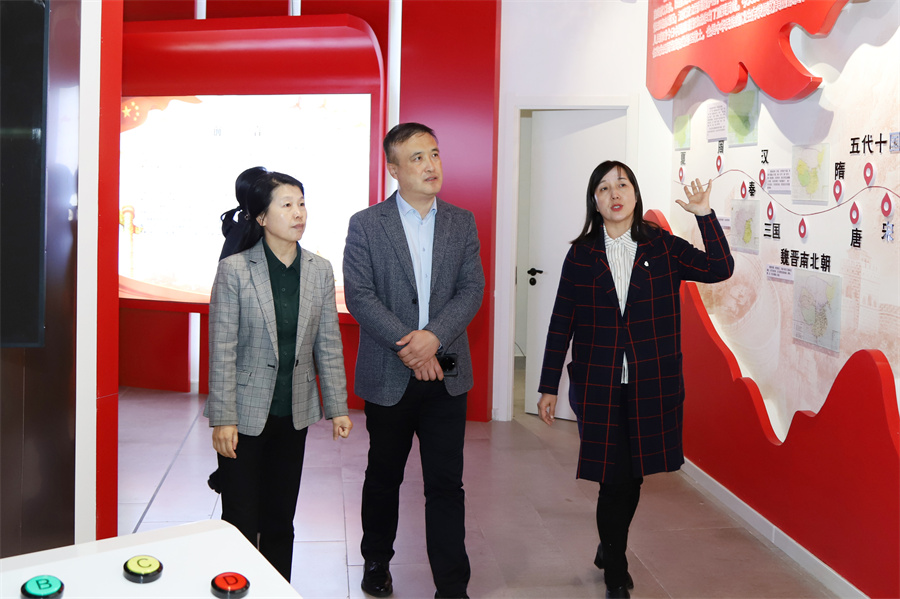 专题讲座结束后,张延赤书记一行在苗晶副书记的引领下,参观了学校图书馆内的团体辅导室、心理咨询室和世界多元文化教育中心 (“地球村”)。