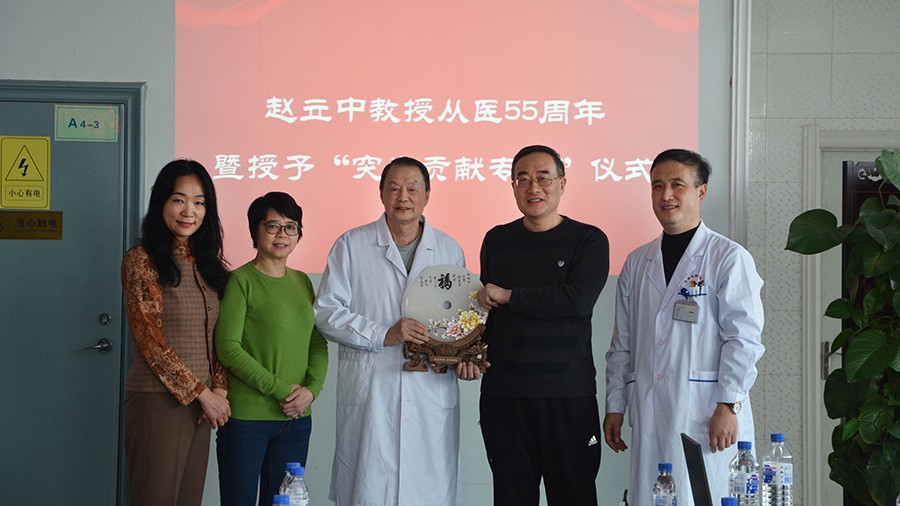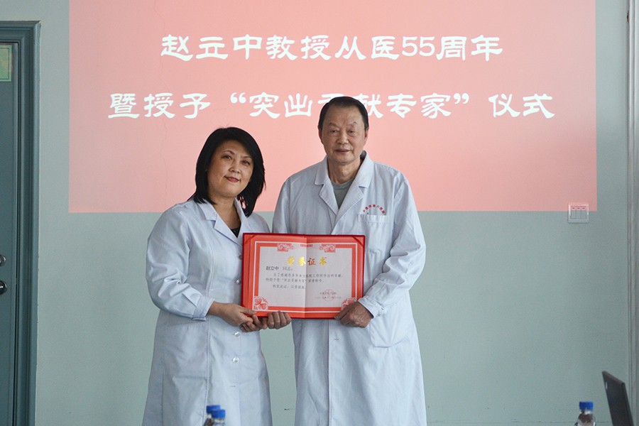 2019年12月30日,小妲己直播下载 举办“赵立中教授从医55周年暨授予‘突出贡献专家’仪式”,医院党委书记、院长桑红及班子成员、各科室主任、青年医生出席仪式。