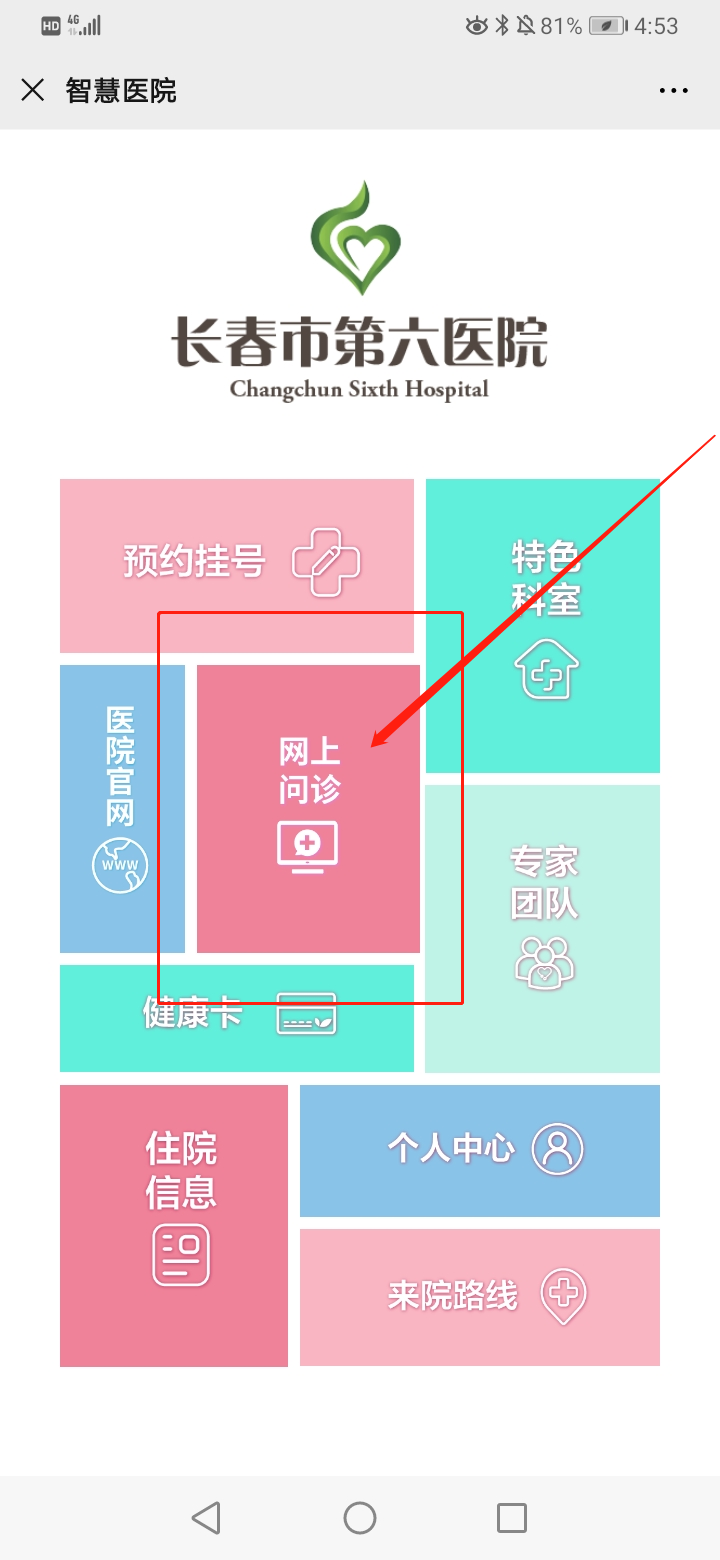 3.点击“网上问诊”栏目,进入“网上问诊”界面