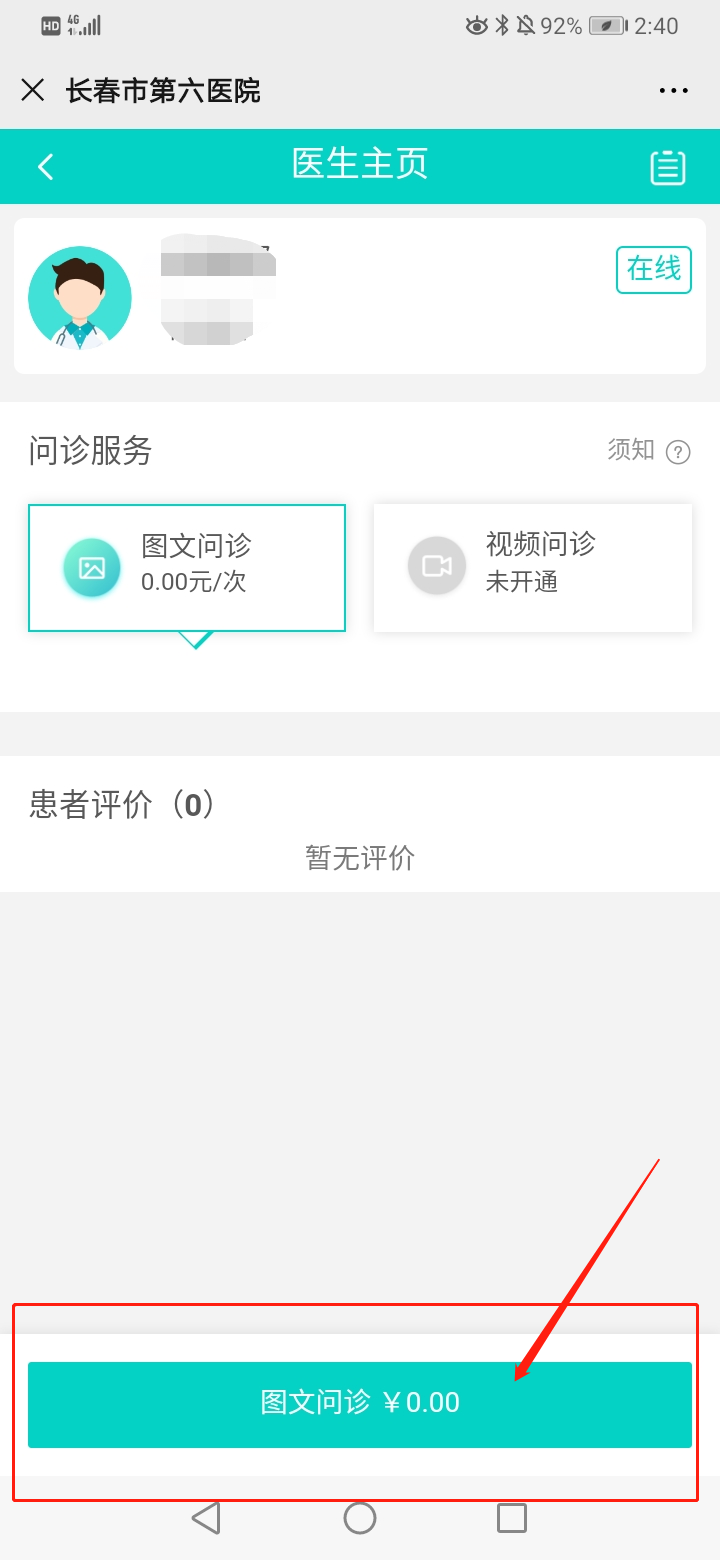 5.默认“图文问诊”,选下方“图文问诊”按键,进入在线问诊界面