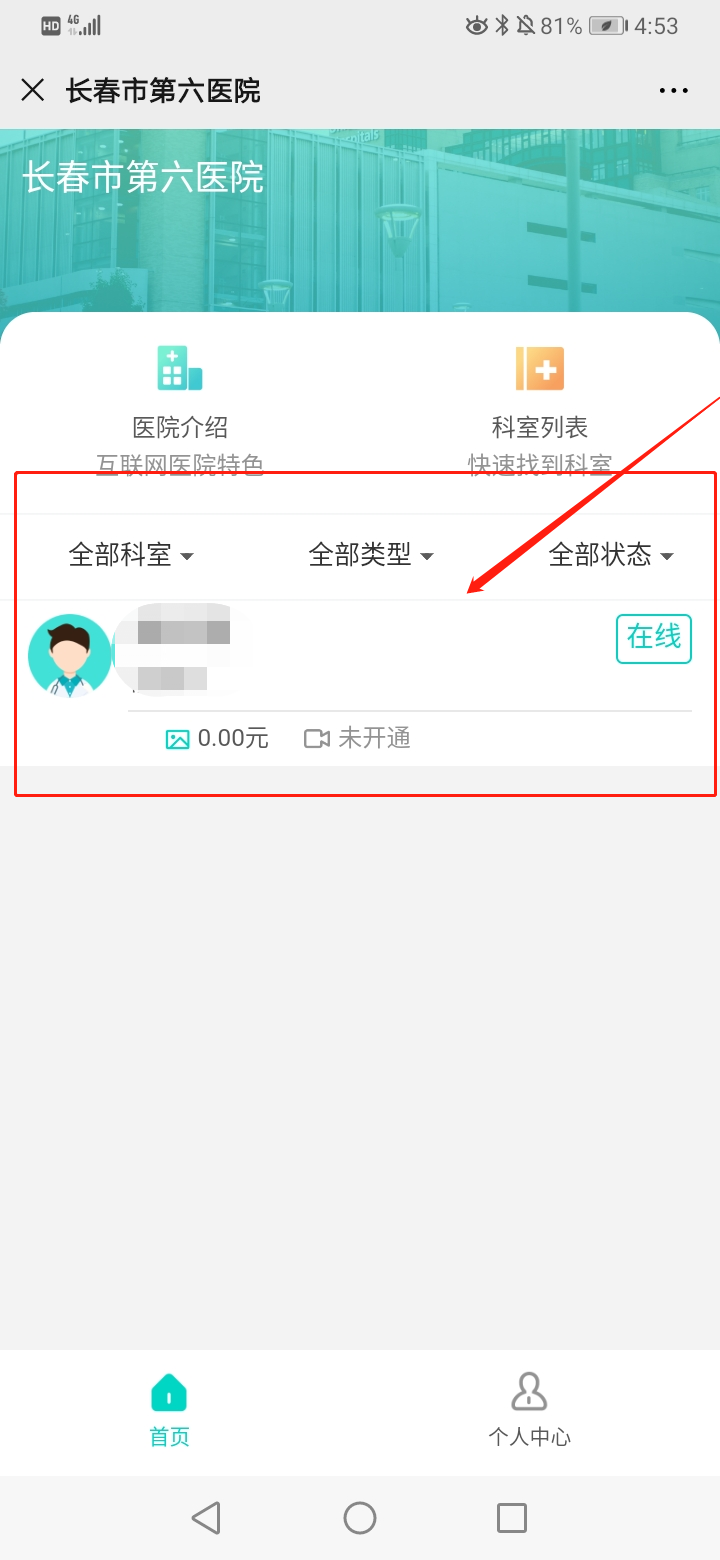4.在“在线医生”中选中拟进行问诊的医生