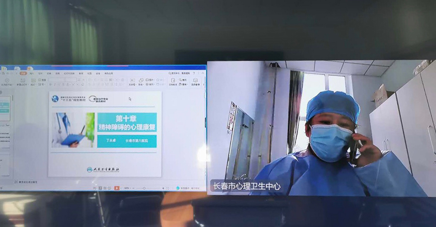 “五号床病人情况?”“体温记录和肺CT检查结果?”心理科四疗区主任丁秀君从走进观察隔离病区后,每天从早晨七点到晚上九十点奔忙在疗区内,一天也没有休息过。疗区的其他医护人员分成两班倒班,实行24小时轮岗制度,但丁秀君作为主任,工作千头万绪无法休息,每天工作都超过10个小时,常常回到宿舍已是晚上十点。进入观察隔离病区后,就不能再与外界接触,丁秀君日常除了照顾疗区病人,还得通过远程设备与外界联系,参与会诊,忙起来连饭都吃不上。