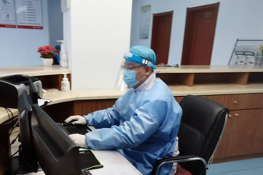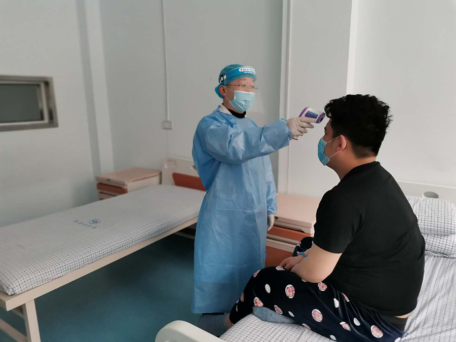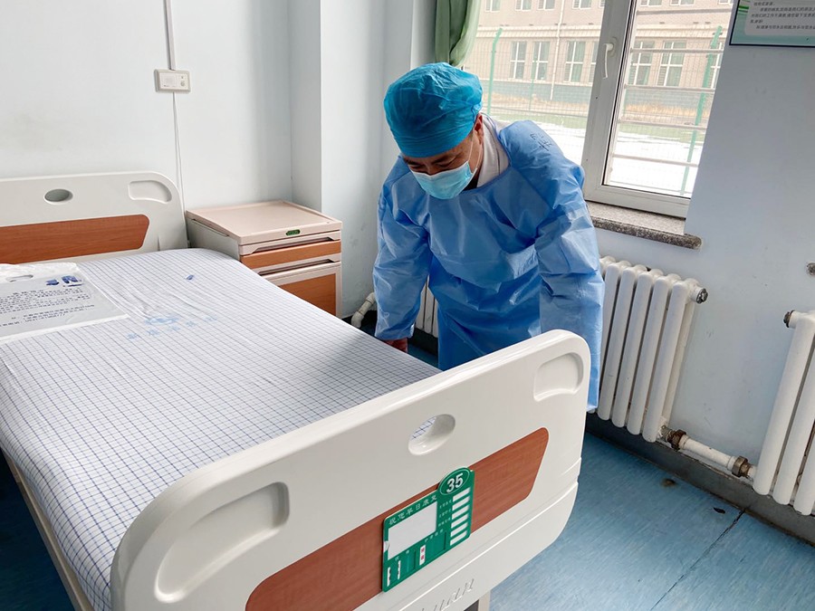 “我好像重新回到了大学宿舍!”质控科干事、男护士吴琦笑呵呵地说。他是被临时抽调到观察隔离病区,也是病区的“开心果”。吴琦上班的第一天,就被一位发病期的女性精神障碍患者,一脚踹在了腰上,他蹲在地上缓了几分钟才起来,但穿着防护服不能检查伤势,下班后才发现被踹了一大块乌青。不过这在精神疗区也属于常见的现象,只是在目前的病区,吴琦更注重防护自己,降低感染的风险。吴琦是一个天性乐观的人,总是笑呵呵的,还爱给同事讲点儿俏皮话缓解气氛,他说:“因为大家不能离开病区,吃住都在一起,好像回到了大学住宿的时代,而且你会充分感觉到团结就是力量,所有人的力量拧成一股绳,就没有度不过去的难关。”