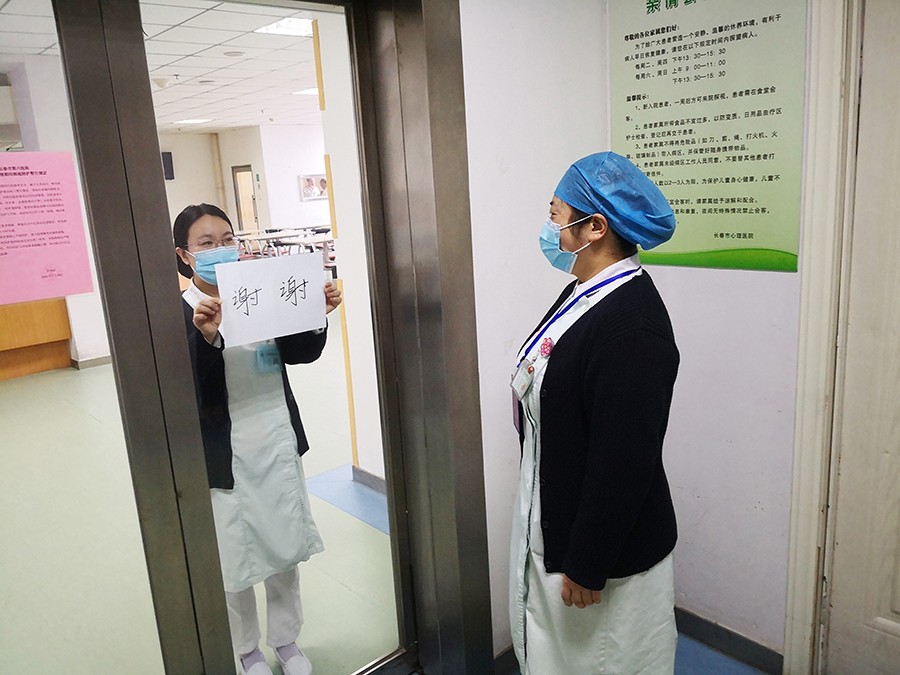 疫情当前,心理疗区病房临时征用为值班人员寝室,为了能让值班人员有个干净整洁的休息环境,工作保障小组用一下午的时间把疗区病房整理出来,更换了医院提供的新被褥、新床单、被罩、枕套,又打扫了病房卫生,并做好了消毒。心理科一疗区的护士王钦,为了尽最大努力服务大家,在上班的第一天就组建了一个工作群,帮大家取快递、打热水、拿各种各样零碎物品,王钦在群里最常说的一句话就是:“有事群里吱声就OK。”