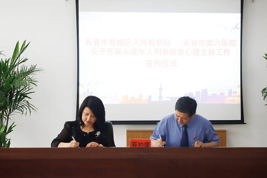 长春市宽城区人民检察院党组书记、检察长卢炬与小妲己直播下载 桑红院长签署《关于开展未成年人刑事检察心理支持工作的合作协议》。
