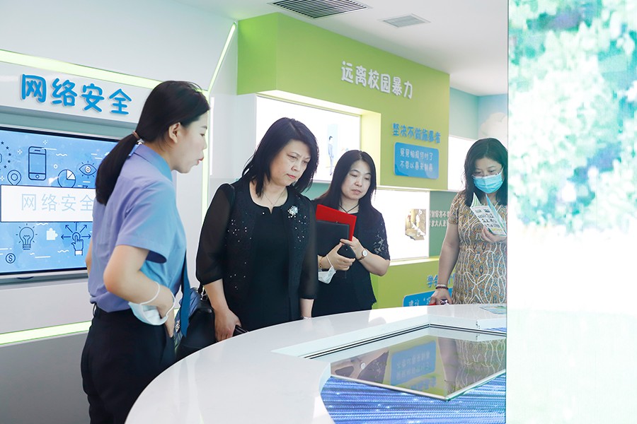 签约仪式结束后,桑红院长一行参观了“宽城区青少年法治教育基地”,对基地里视频普法、游戏普法、VR模拟展示等新颖、实用的普法安全教育方式点赞。