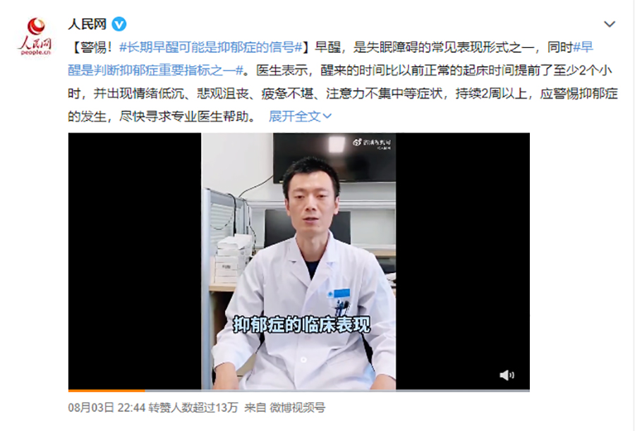 最后,燕利娟提示大家:早醒是睡眠障碍的一种表现,也是身心健康的大问题,还是抑郁的一个信号,要尽快就医,寻求专业医生帮助,切莫掉以轻心,错过最佳的治疗时机。